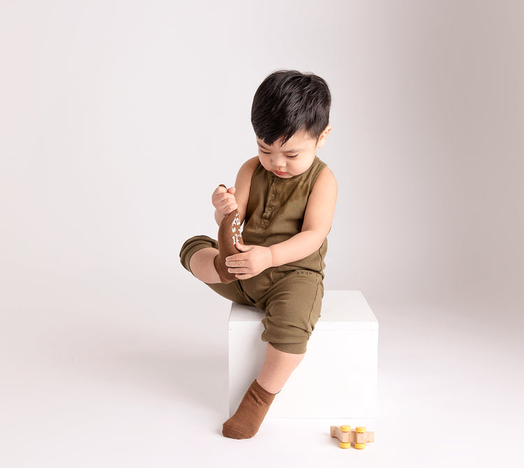 From first wiggles to first steps, gentle silicone grips inside the cuff keep socks on through car seats, grocery runs, and daycare. Bottom grips add traction to help prevent slips and falls.